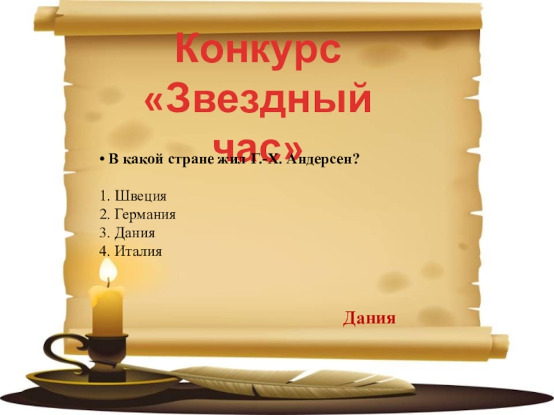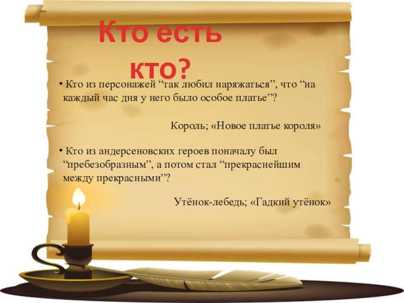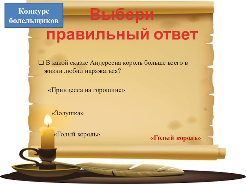 А из какой сказки эти строчки? Много-много лет назад, жил-был на свете король. Он так любил наряжаться, что тратил на это все свои сбережения. На каждый час дня у него было своё особое платье?