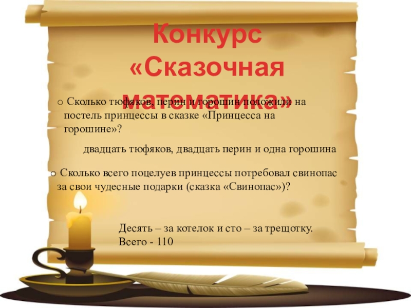Десять – за котелок и сто – за трещотку. Всего - 110
