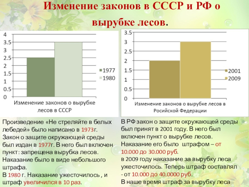 В РФ закон о защите окружающей среды был принят в 2001 году. В него был включен пункт о вырубке лесов. Наказание его было штрафом – от 10.000 до 30.000 руб.