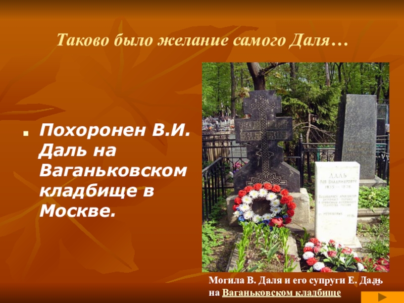 Могила В. Даля и его супруги Е. Даль на Ваганьковском кладбище
