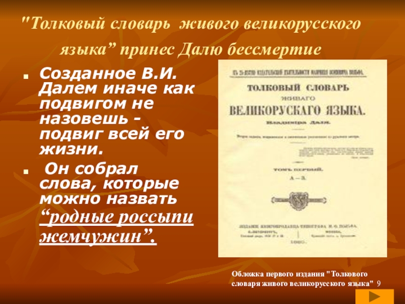 Обложка первого издания "Толкового словаря живого великорусского языка"
