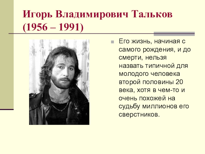 Слайд 14Игорь Владимирович Тальков (1956 – 1991)
