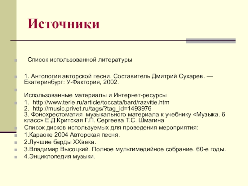1. Антология авторской песни. Составитель Дмитрий Сухарев. — Екатеринбург: