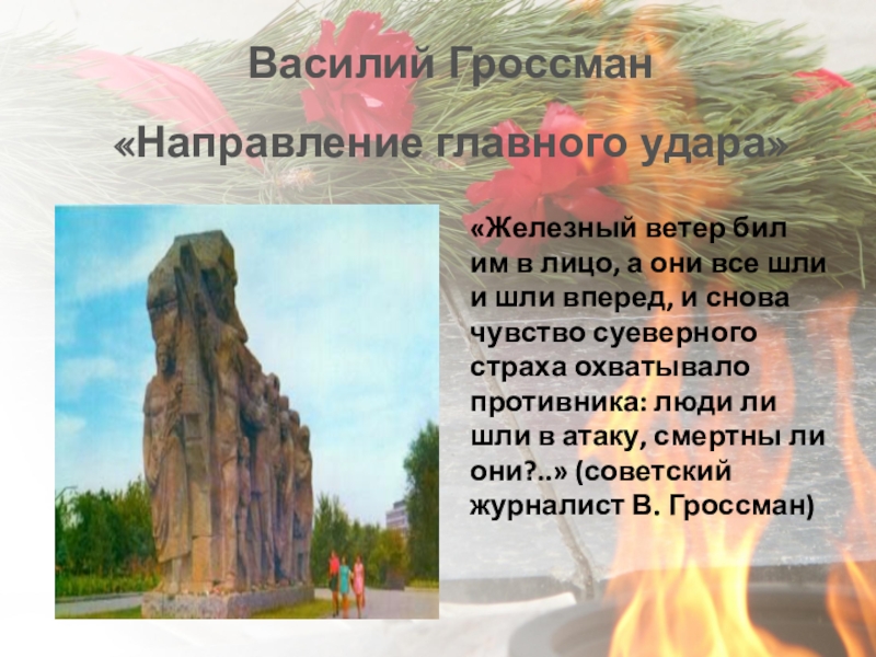 Василий Гроссман«Направление главного удара» «Железный ветер бил им в лицо, а они все шли и шли вперед,