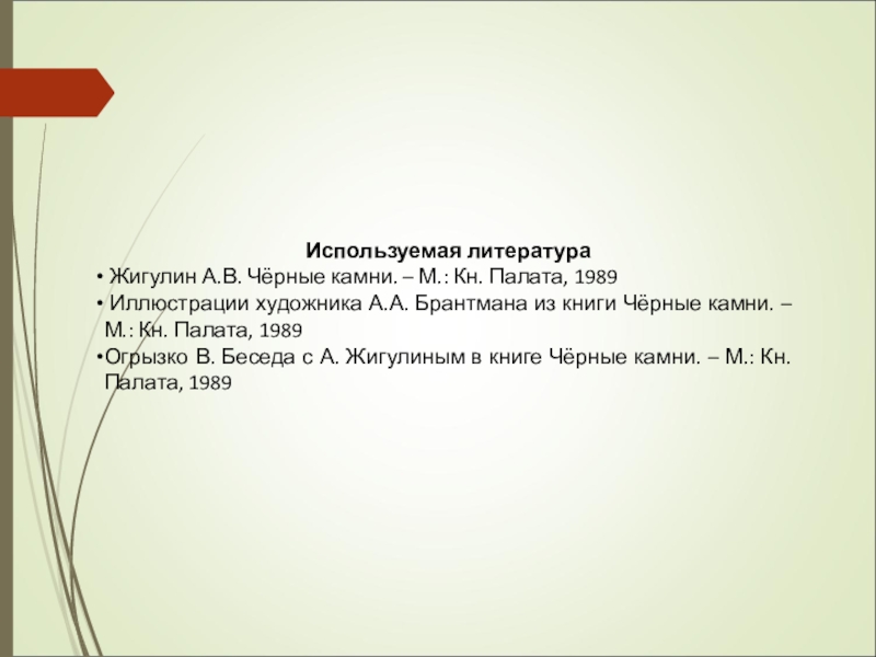 Огрызко В. Беседа с А. Жигулиным в книге Чёрные камни. – М.: Кн. Палата, 1989