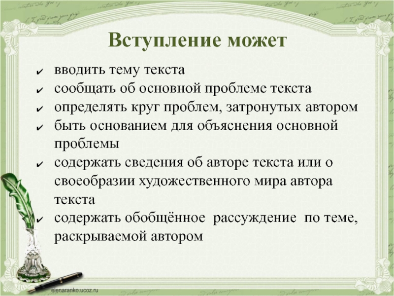 Вступление, как и заключение, - это важные композиционные части сочинения.