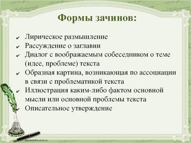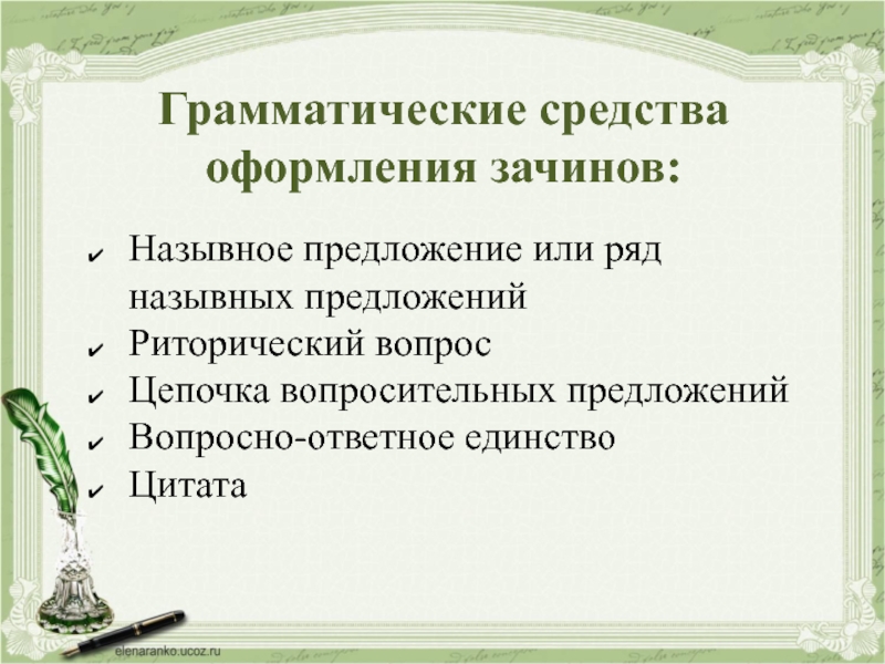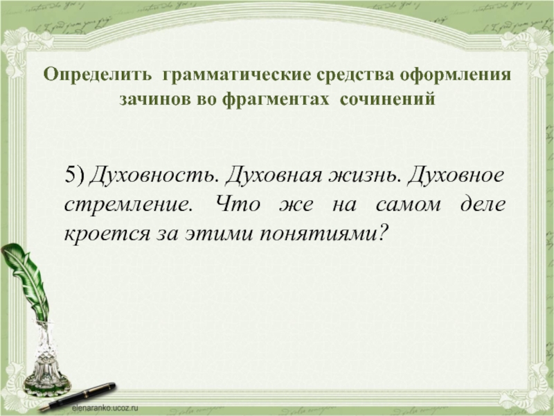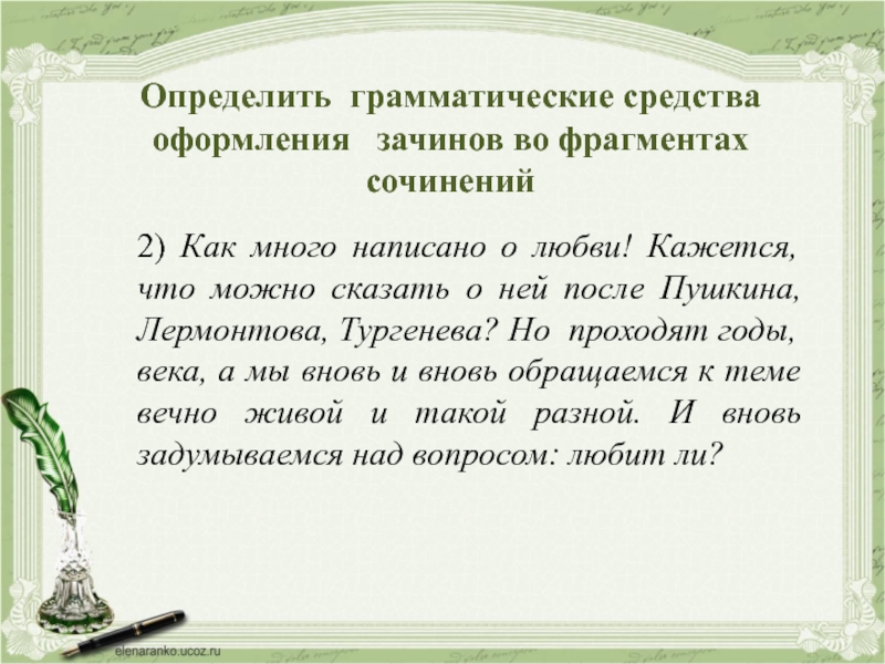 Слайд 10Определить грамматические средства оформления зачинов во фрагментах сочинений