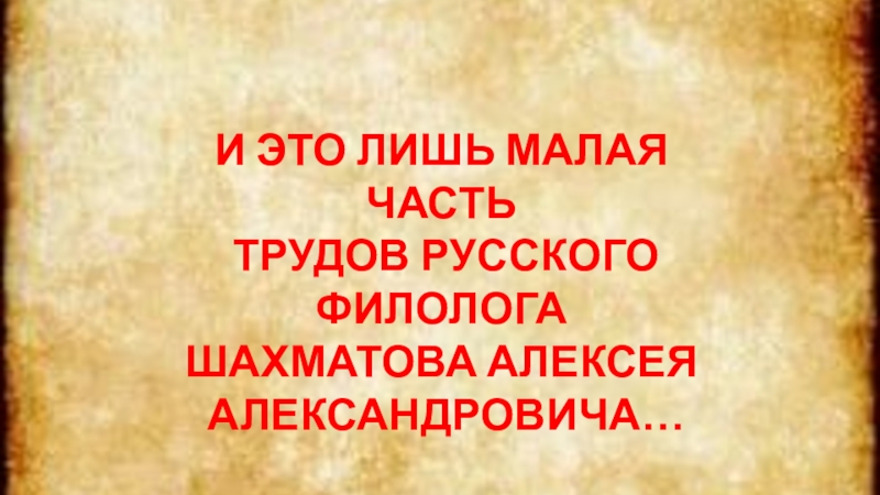 И ЭТО ЛИШЬ МАЛАЯ ЧАСТЬ ТРУДОВ РУССКОГО ФИЛОЛОГАШАХМАТОВА АЛЕКСЕЯ АЛЕКСАНДРОВИЧА…