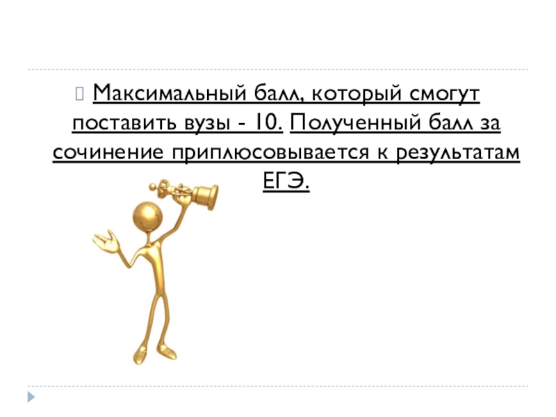 Слайд 5Максимальный балл, который смогут поставить вузы - 10. Полученный балл за сочинение