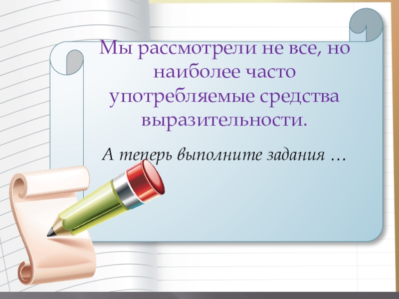 Слайд 8Мы рассмотрели не все, но наиболее часто употребляемые средства выразительности.