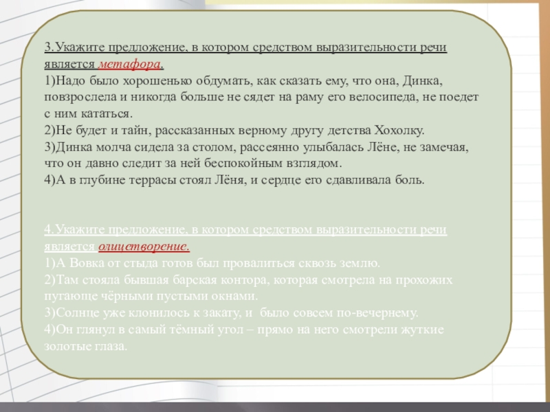 3.Укажите предложение, в котором средством выразительности речи является метафора.