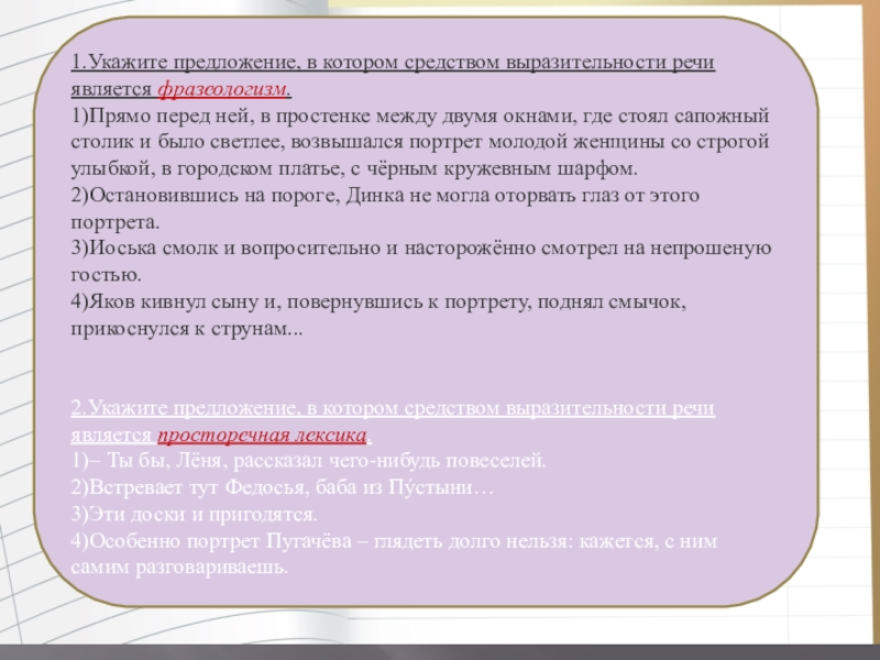 2.Укажите предложение, в котором средством выразительности речи является просторечная лексика.