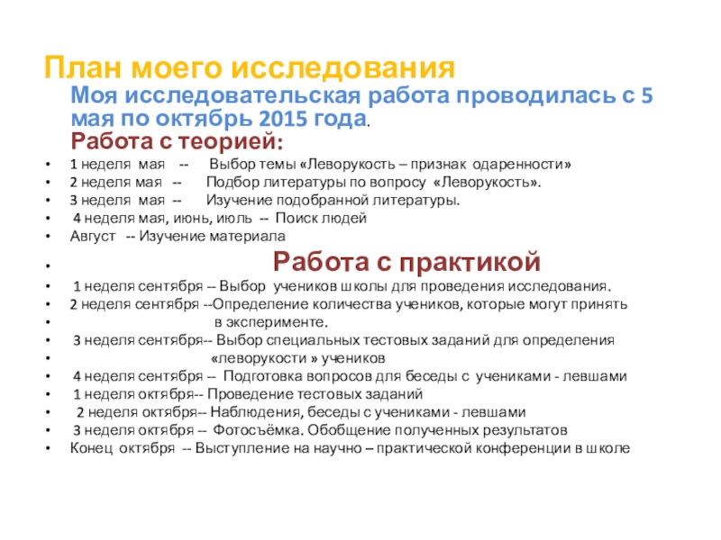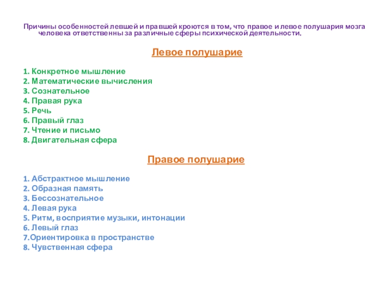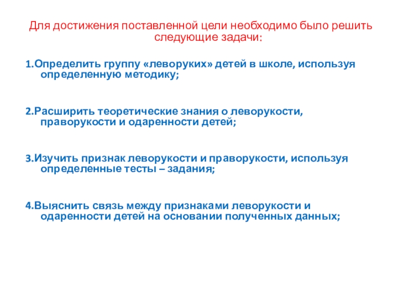 2.Расширить теоретические знания о леворукости, праворукости и одаренности детей;