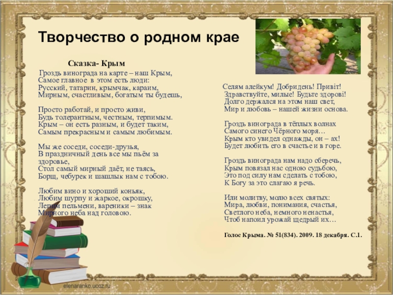 6. Александрова В. Сказка – Крым// Голос Крыма. 2009. №51(834).18 декабря. С.1