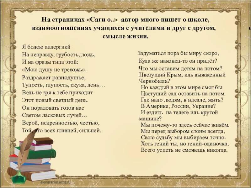 На страницах «Саги о..» автор много пишет