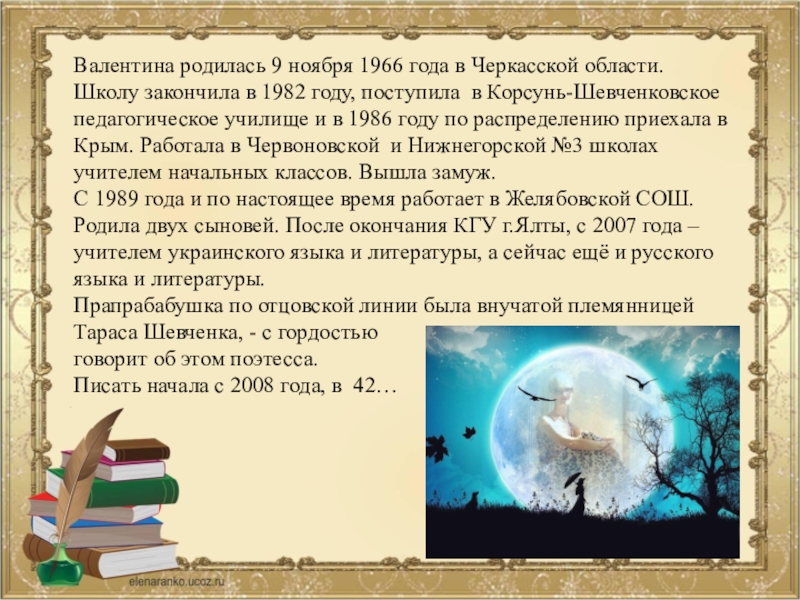 Валентина родилась 9 ноября 1966 года в Черкасской области. Школу