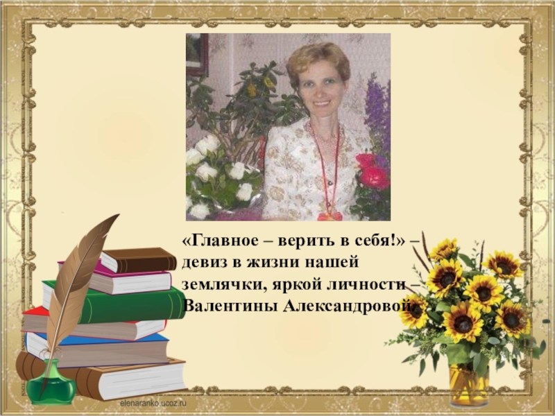 Слайд 18«Главное – верить в себя!» – девиз в жизни нашей землячки,