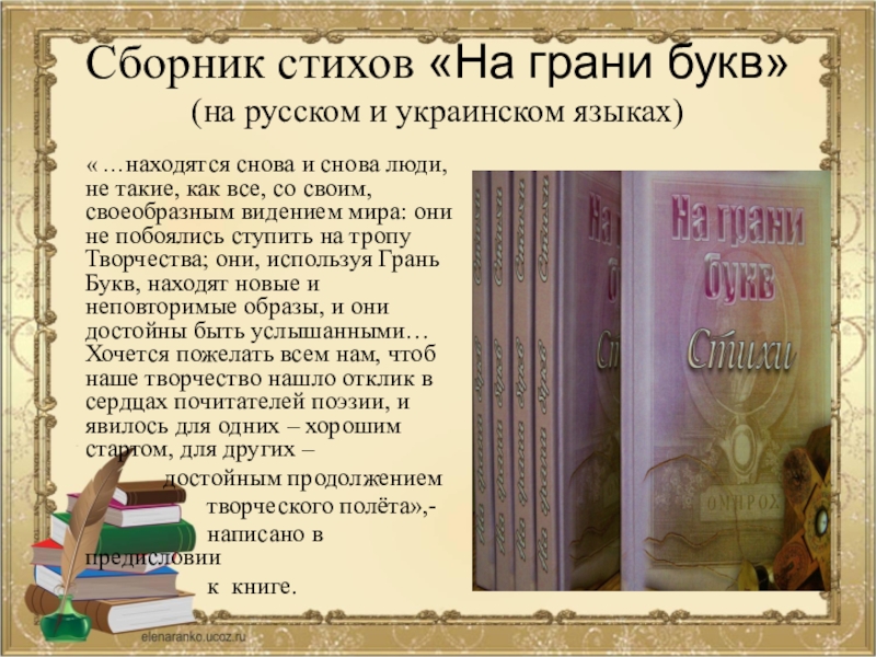 Слайд 10Сборник стихов «На грани букв»