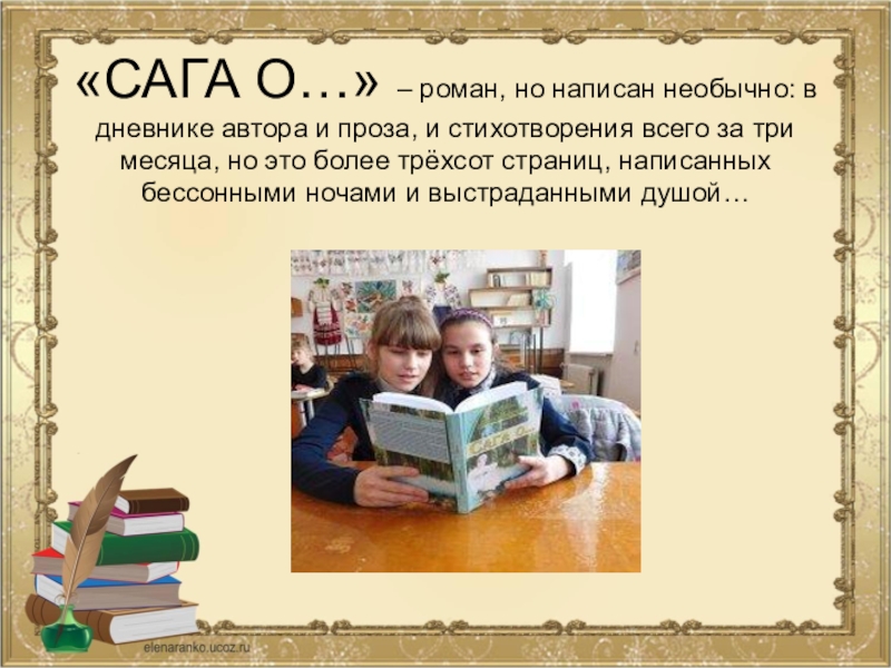 Слайд 15«САГА О…» – роман, но написан необычно: в дневнике автора и