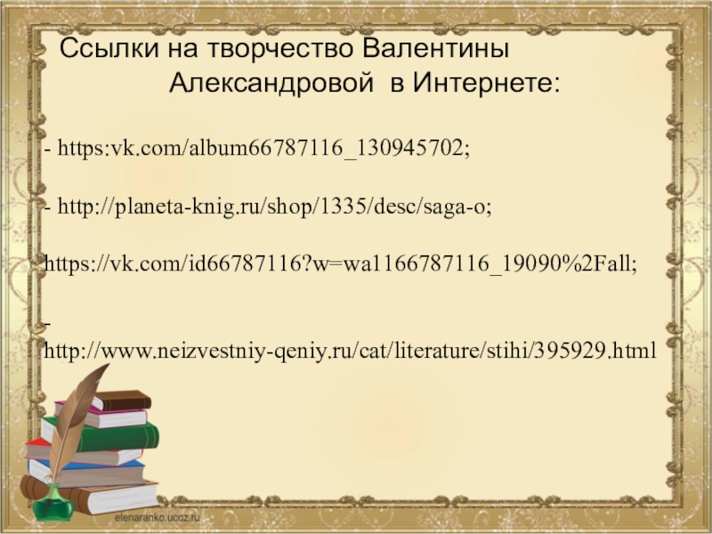 Слайд 19 Ссылки на творчество Валентины