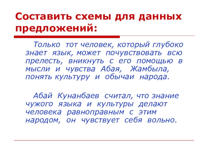 Сократ писал: «Без дружбы никакое общение между людьми не имеет ценности». Дружба казахского и русского народа насчитывает уже много веков. Стремление к согласию живет в крови наших народов. Я стремлюсь овладеть в совершенстве русским языком, чтобы научить « великому, могучему, правдивому и свободному русскому языку» моих друзей.