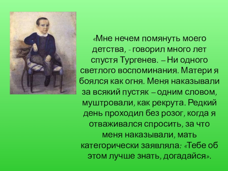 Слайд 5«Мне нечем помянуть моего детства, - говорил много лет спустя Тургенев.