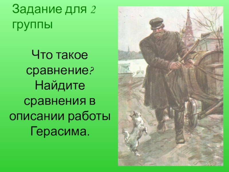 Что такое сравнение? Найдите сравнения в описании работы Герасима.Задание для 2 группы