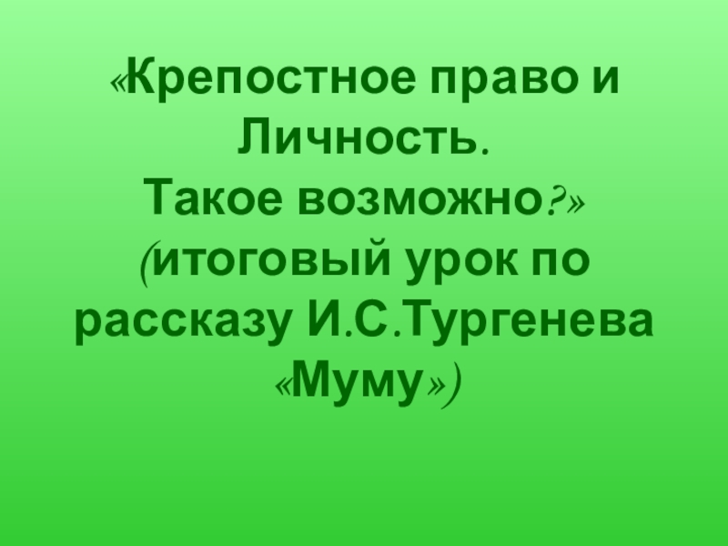 «Крепостное право и Личность. Такое возможно?»(итоговый урок по рассказу И.С.Тургенева «Муму»)