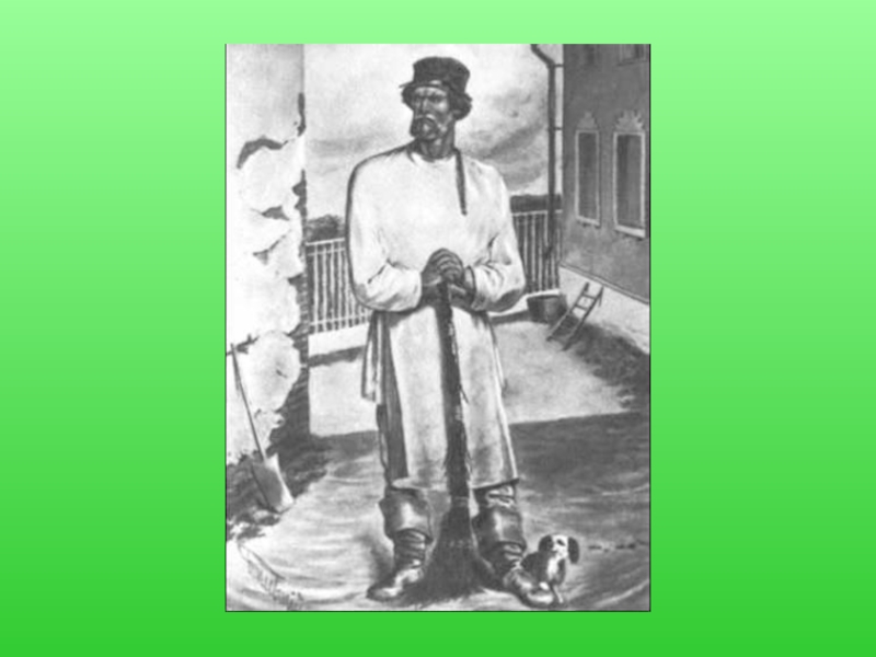 Слайд 6Вдова, окруженная многочисленною дворней. Сыновья ее служили в Петербурге, дочери вышли