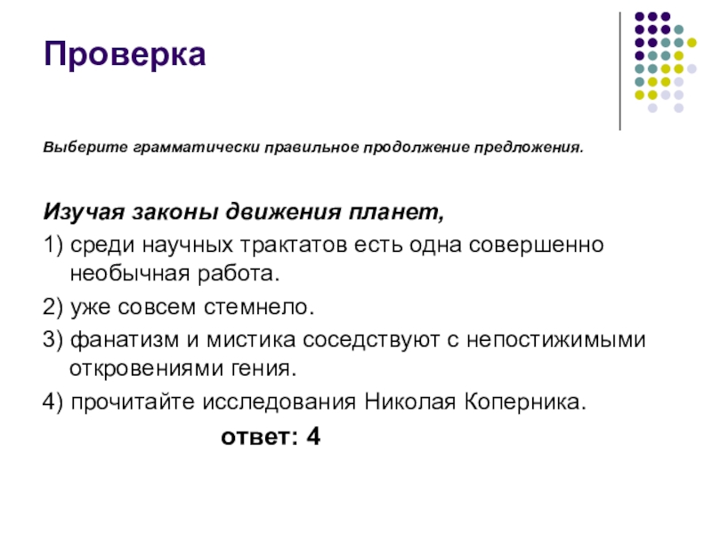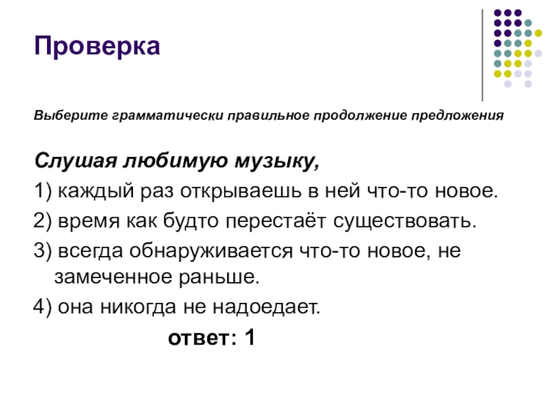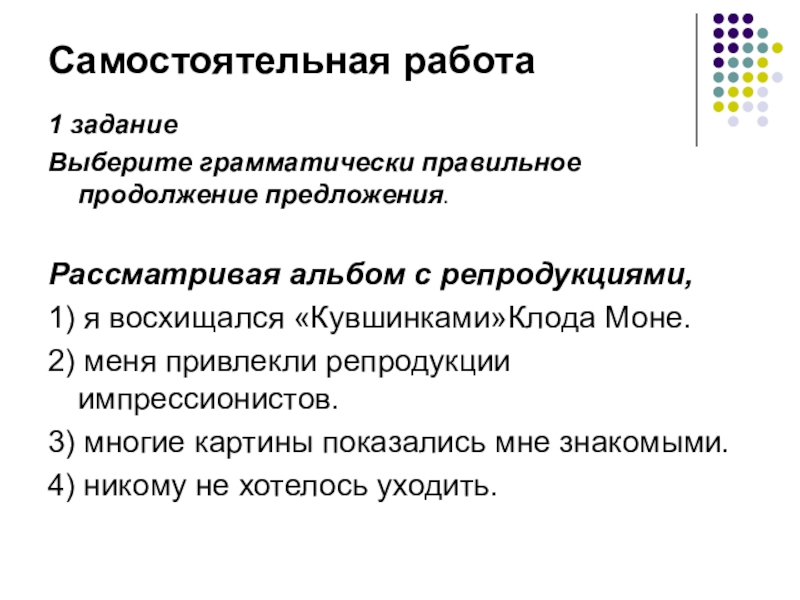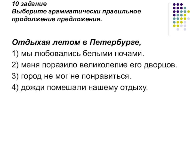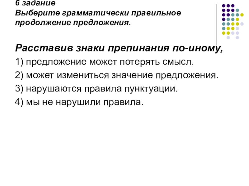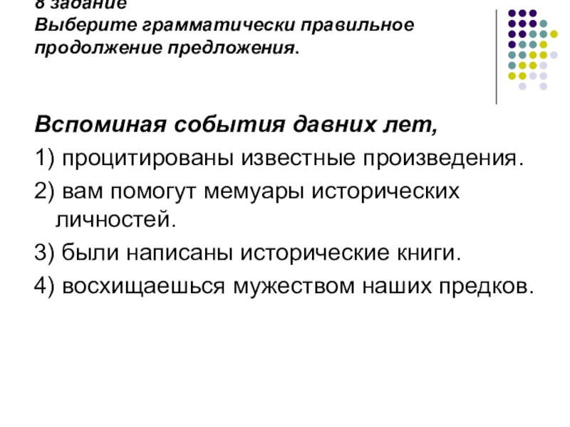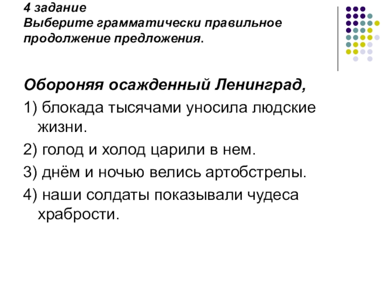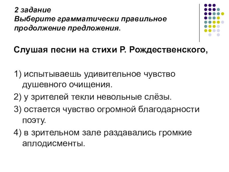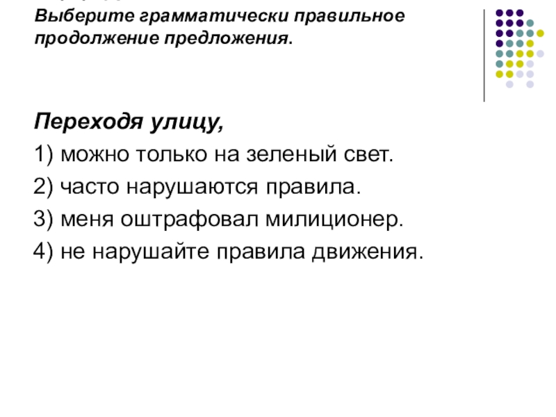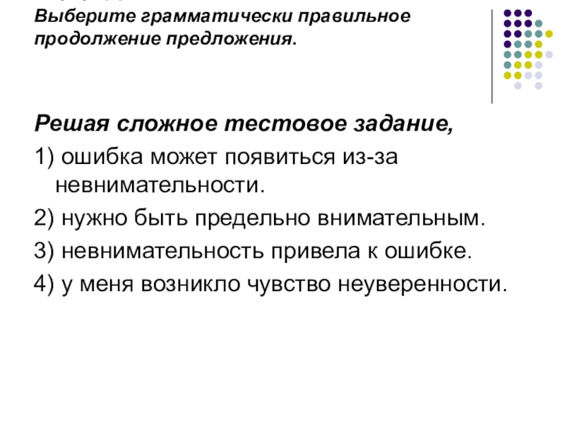 Слайд 3Задание: Выберите грамматически правильное продолжение предложения.