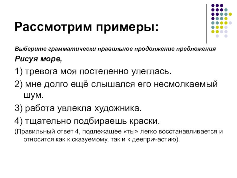 (построение предложения с деепричастным