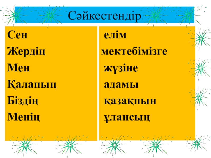 Кімнің меншігі екенін,не нәрсеге тән екенін білдіреді