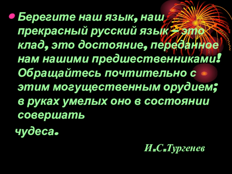 Берегите наш язык, наш прекрасный русский язык – это клад, это достояние, переданное нам нашими предшественниками! Обращайтесь