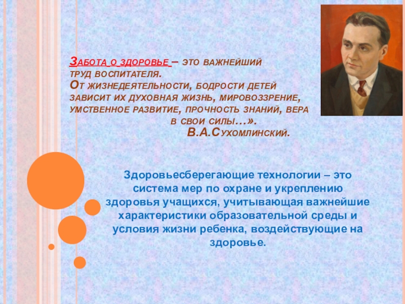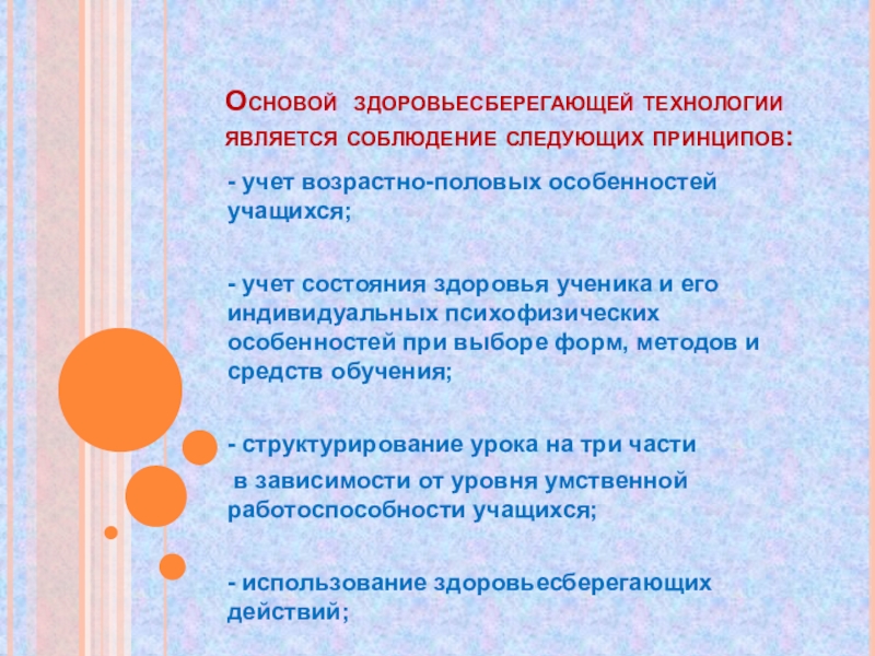 Здоровьесберегающие технологии – это система мер по охране и укреплению здоровья учащихся, учитывающая важнейшие характеристики образовательной среды и условия жизни ребенка, воздействующие на здоровье.