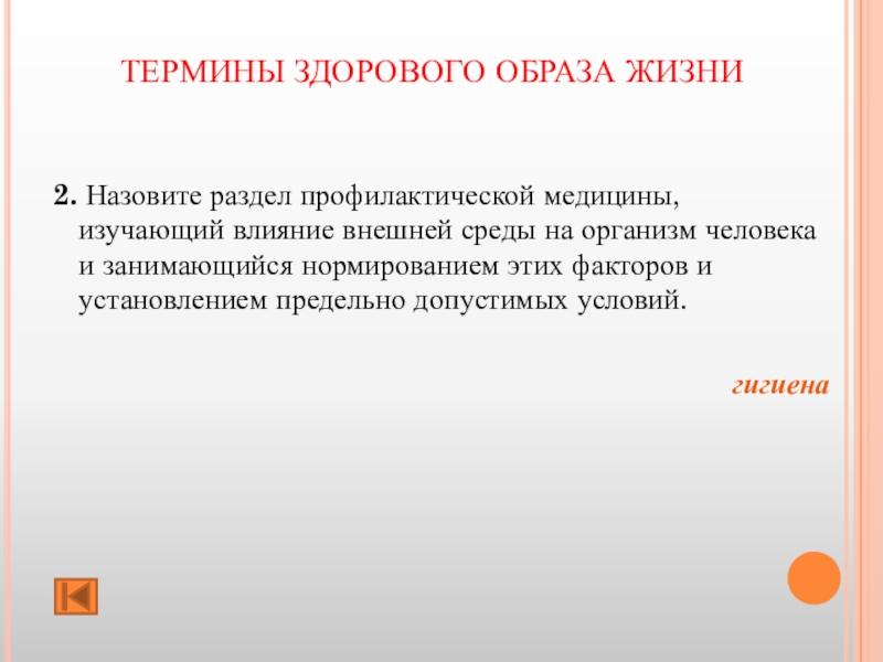 ТЕРМИНЫ ЗДОРОВОГО ОБРАЗА ЖИЗНИ 2. Назовите раздел профилактической медицины, изучающий влияние внешней среды на