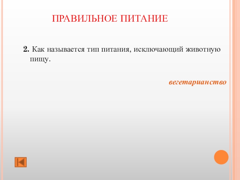 ПРАВИЛЬНОЕ ПИТАНИЕ 2. Как называется тип питания, исключающий животную пищу. вегетарианство