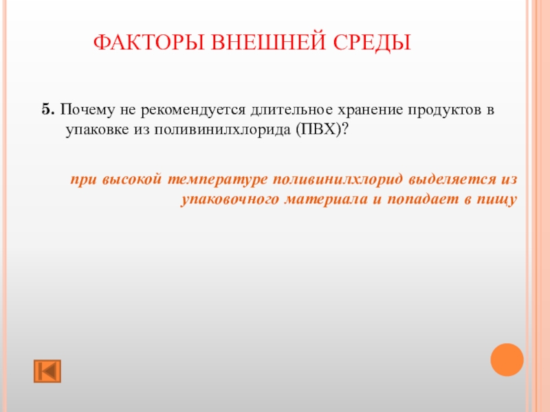 ФАКТОРЫ ВНЕШНЕЙ СРЕДЫ 5. Почему не рекомендуется длительное хранение продуктов в упаковке из поливинилхлорида (ПВХ)? при высокой