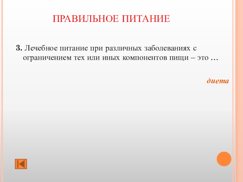 ПРАВИЛЬНОЕ ПИТАНИЕ 4. Питание, при котором в течение дня принимается один вид пищи, например, молочная, мясная, творожная,