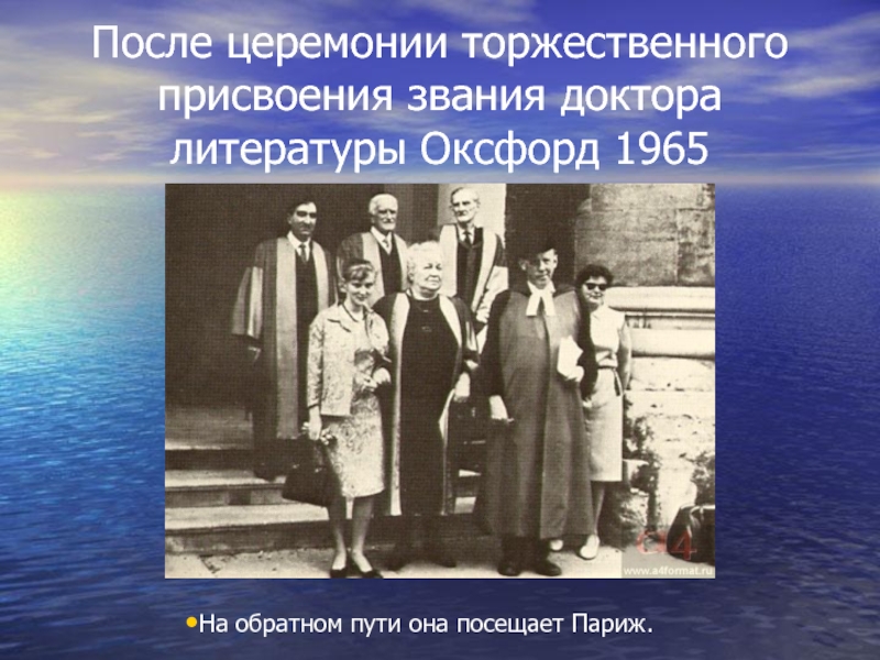 Слайд 62После церемонии торжественного присвоения звания доктора литературы Оксфорд 1965