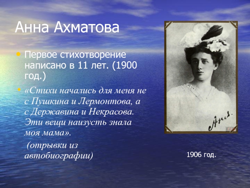 Первое стихотворение написано в 11 лет. (1900 год.)