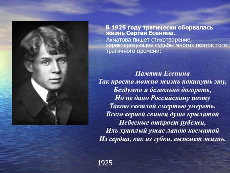 Но только ей из всей плеяды поэтов Серебряного века суждено было прожить долгую, хотя и полную трагедий, жизнь и умереть естественной смертью.