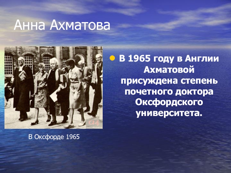 В 1965 году в Англии Ахматовой присуждена степень почетного доктора