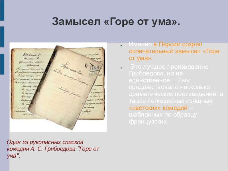 Один из рукописных списков комедии А. С. Грибоедова "Горе от ума".