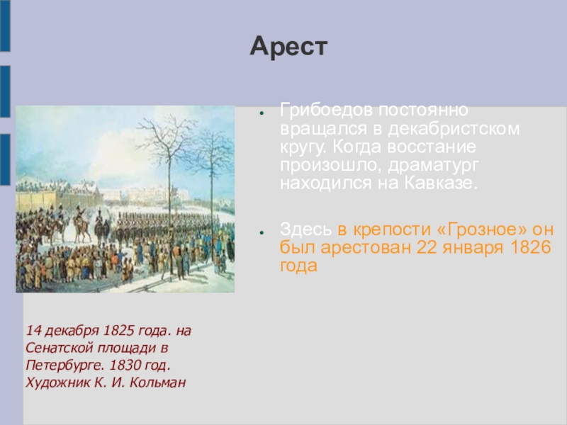 14 декабря 1825 года. на Сенатской площади в Петербурге. 1830 год. Художник К. И. Кольман