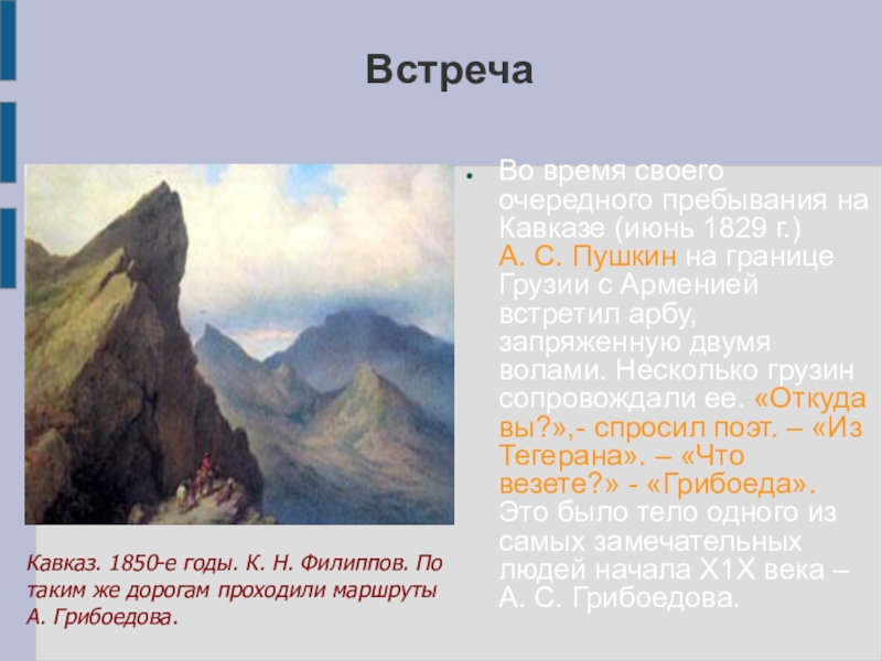 Кавказ. 1850-е годы. К. Н. Филиппов. По таким же дорогам проходили маршруты А. Грибоедова.