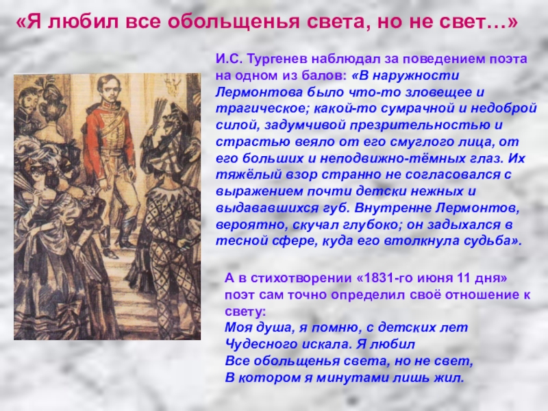 А в стихотворении «1831-го июня 11 дня» поэт сам точно определил своё отношение к свету: