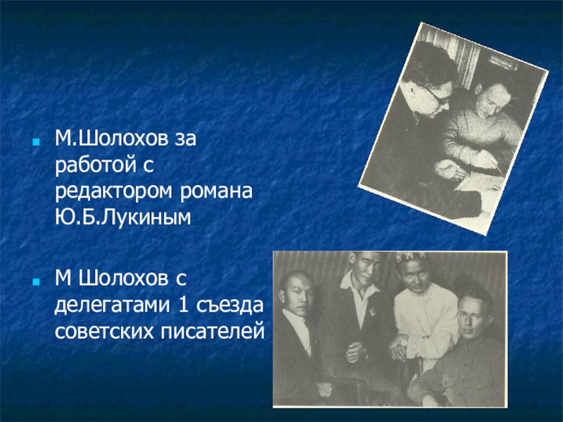 М.Шолохов за работой с редактором романа Ю.Б.ЛукинымМ Шолохов с делегатами 1 съезда советских писателей