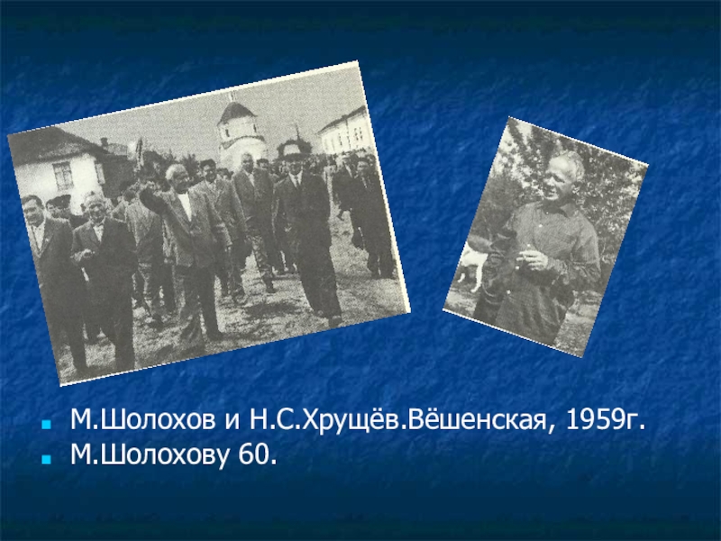 Слайд 17М.Шолохов и Н.С.Хрущёв.Вёшенская, 1959г.