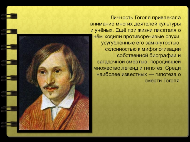 Слайд 12Личность Гоголя всегда выделялась особой таинственностью. С одной стороны он являл