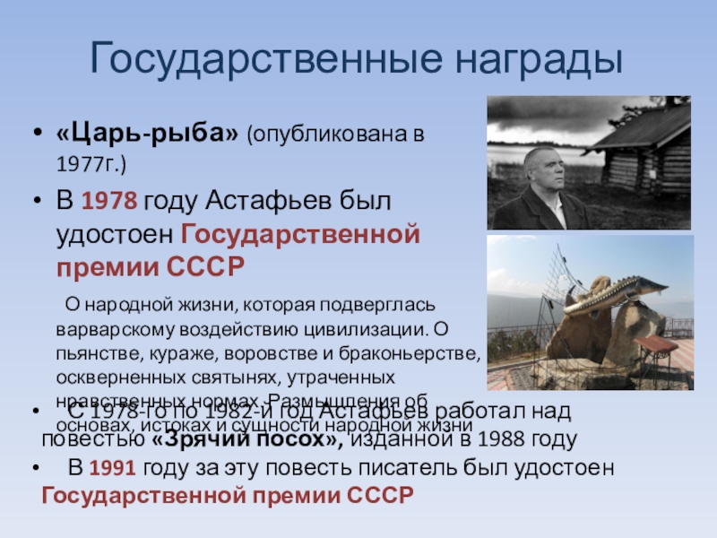 В 1991 году за эту повесть писатель был удостоен Государственной премии СССР